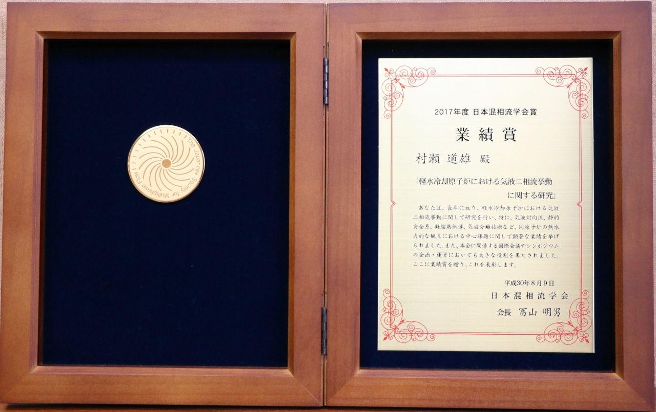 2018年8月、日本混相流学会において「業績賞」を受賞しました。