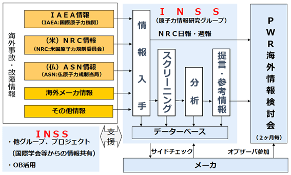 海外の原子力発電所の事故や故障の情報を入手・分析し、データベース化するとともに、加圧水型原子炉(PWR)を持つ国内の事業者に、類似不具合の未然防止のための提言を行っています。