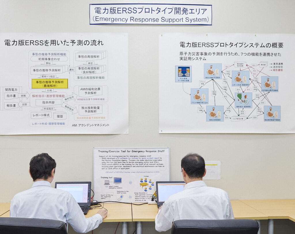 原子力災害に伴う従業員被ばく線量の予測技術を開発したほか、原子力発電所のシビアアクシデントに至るプロセスを詳しくシミュレーションし、プラント内部におけるトラブル事態の進展を予測する技術の開発に取り組んでいます。